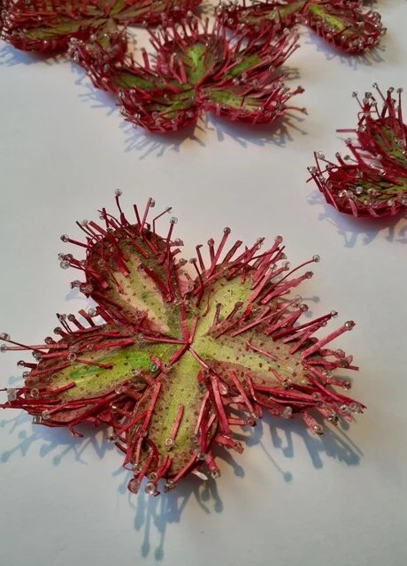 Glisten (sundews), watercolour on paper, beads, 2x30x30cm, 2020 (Available)